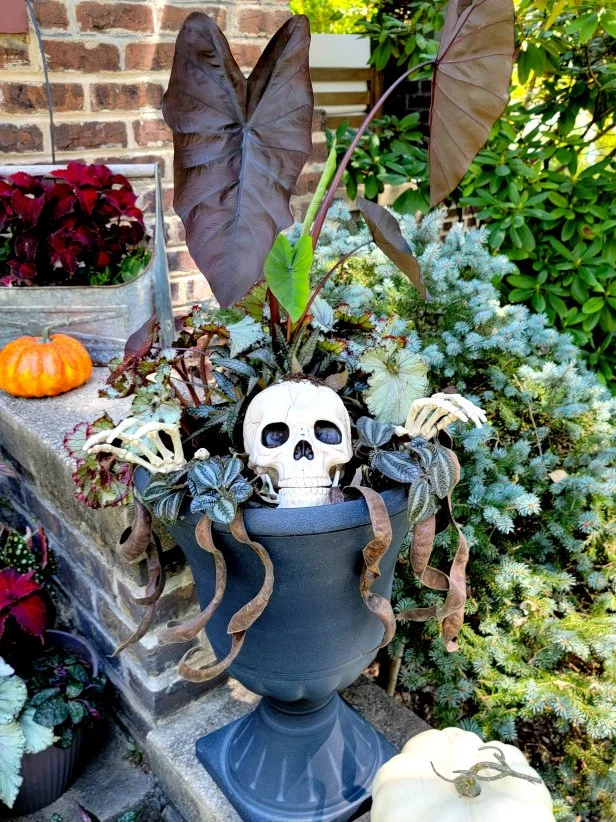- Skulls and Bones: Lightweight, artificial skulls can be nestled among the plants. Choose neutral colors that contrast with green foliage.
