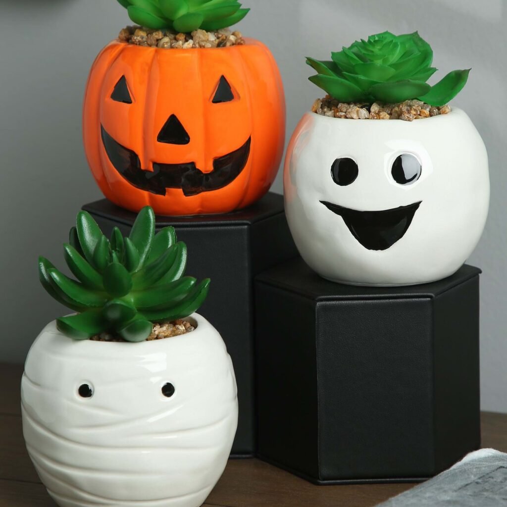 Extra Tip: Mix textures and colors in succulents — purple, red, and gray-toned varieties naturally complement Halloween décor.