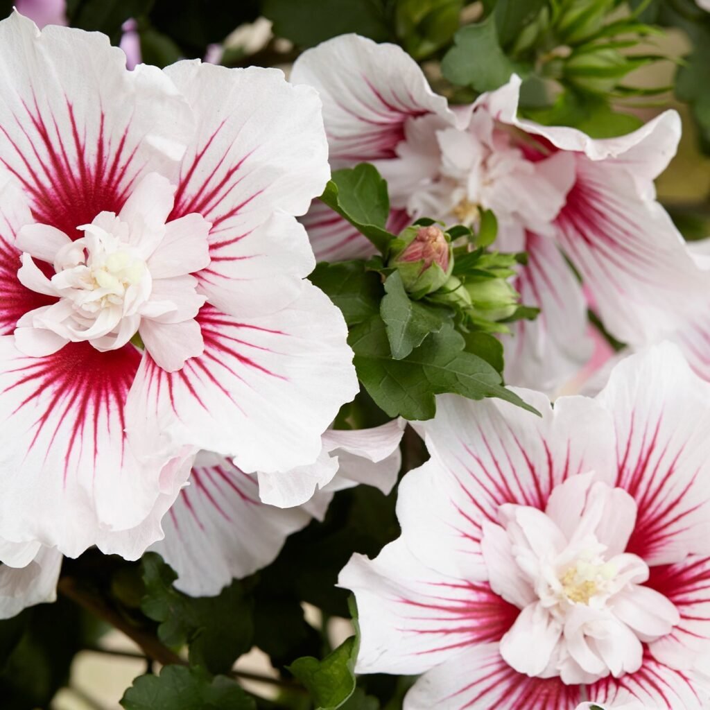 When other shrubs begin to fade in the heat, Rose of Sharon bursts into life with tropical-looking blooms in shades of lavender, pink, red, and white.
