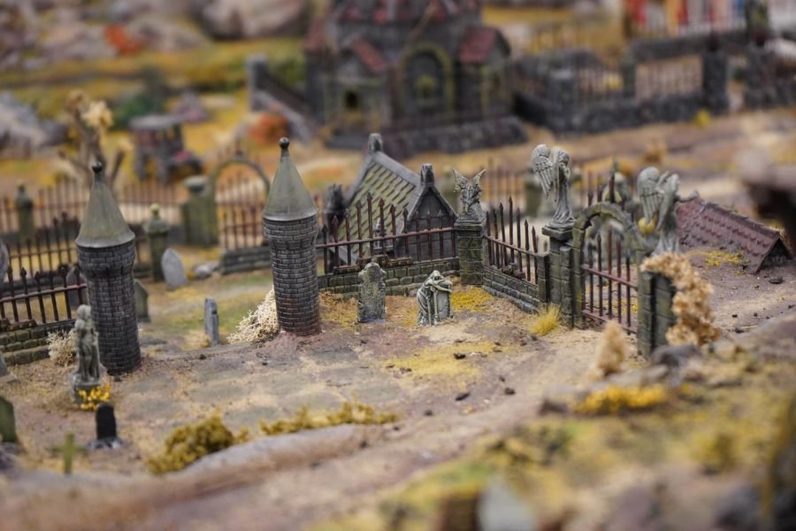 - Lighting: Soft LED candles or lanterns placed around the tombstones cast eerie shadows and highlight the scene.