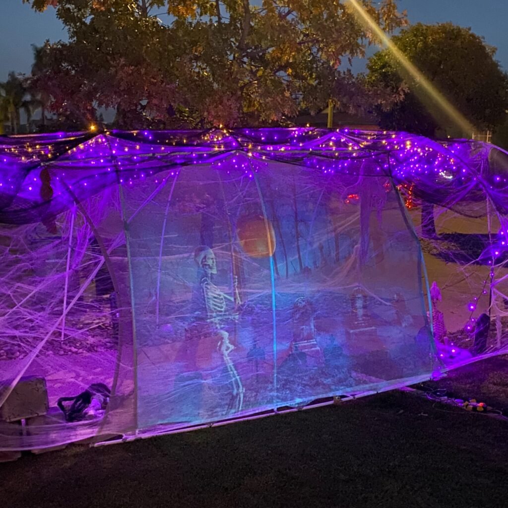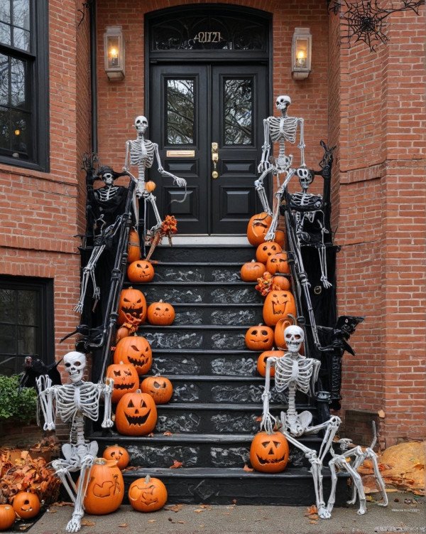 - Dim Lighting: Line the entryway with flickering LED lanterns or orange string lights. Avoid bright white lights — dim, warm tones enhance the eerie ambiance.