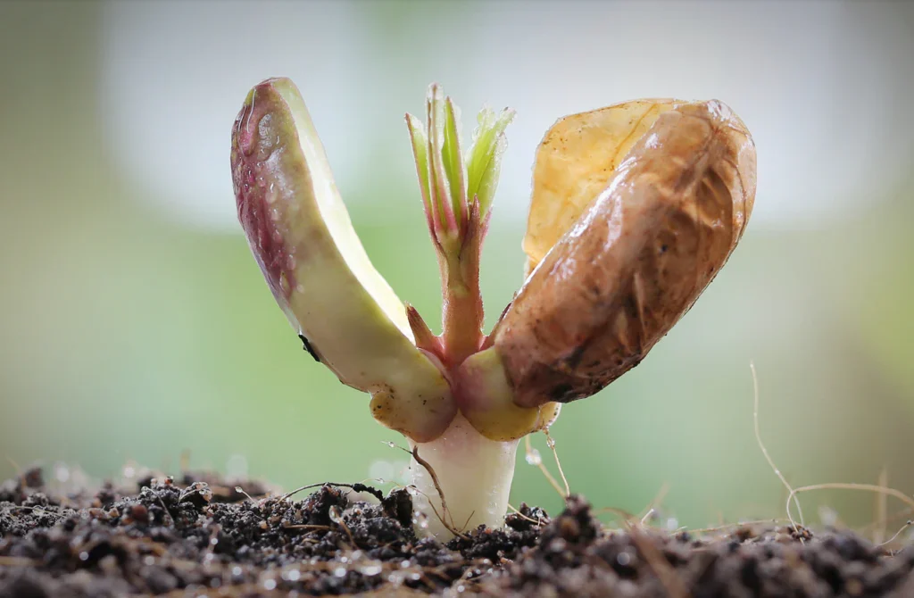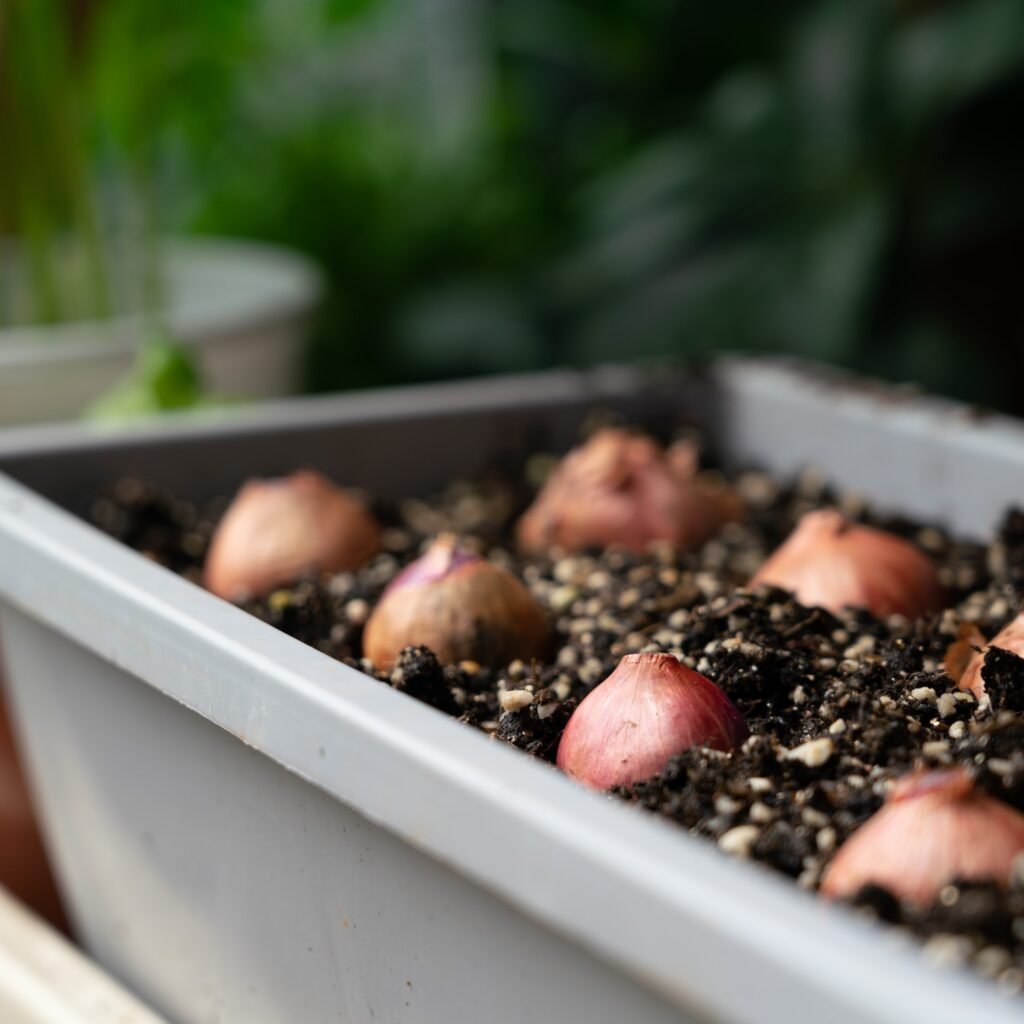 - Cover lightly with soil and water gently.