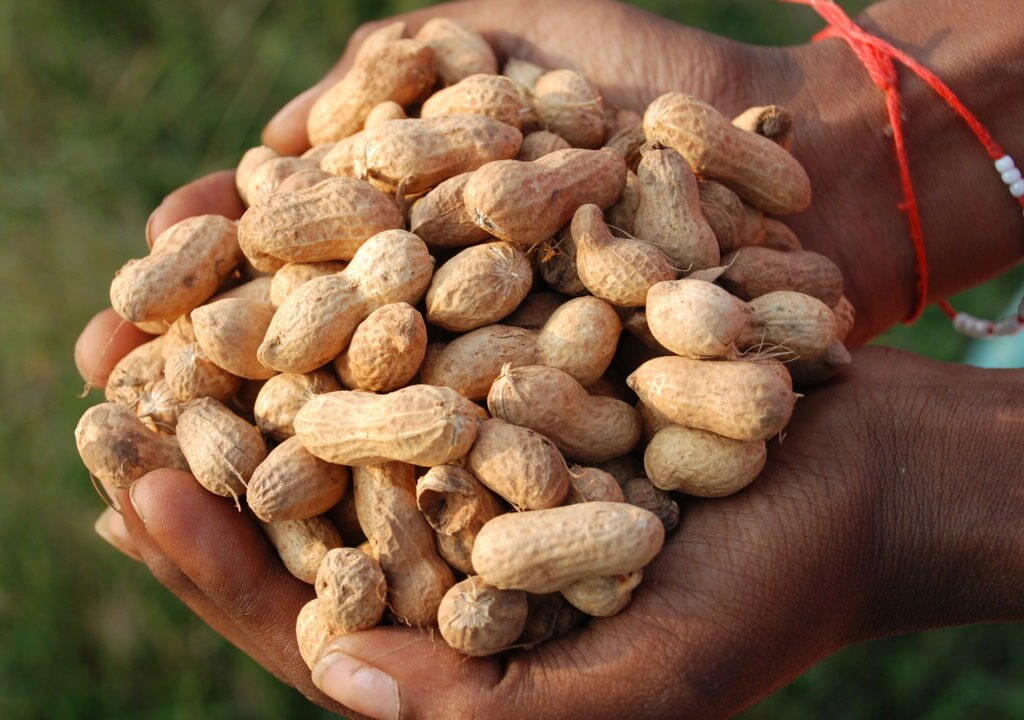 - Drop 2–3 seeds into each hole.