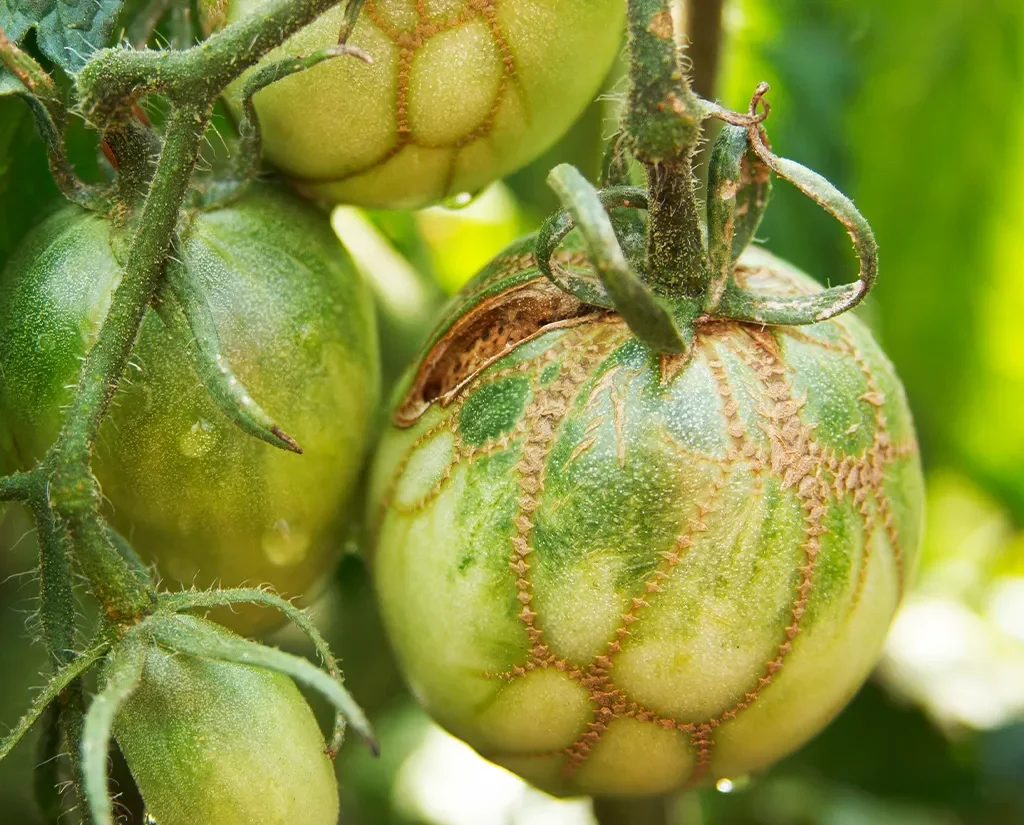 Too much nitrogen (often from lawn fertilizer or over-fertilizing) pushes lush green foliage at the expense of flowers and fruit. The plant looks beautiful — but blooms fall off before setting fruit.