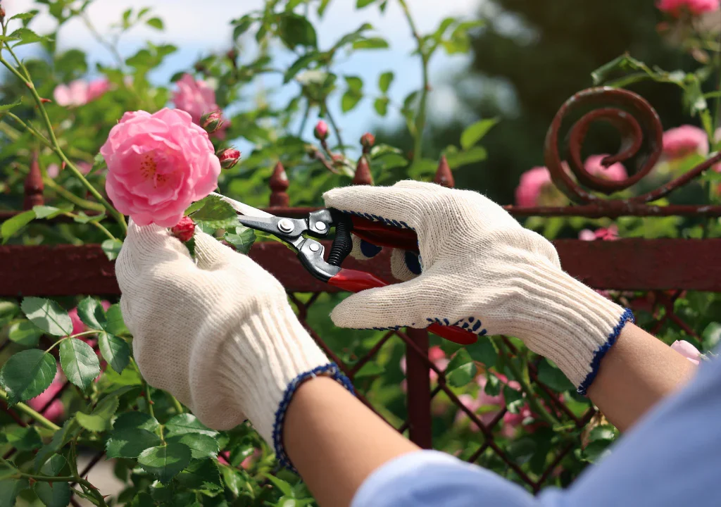 • Gloves: Heavy-duty rose gloves protect against thorns.