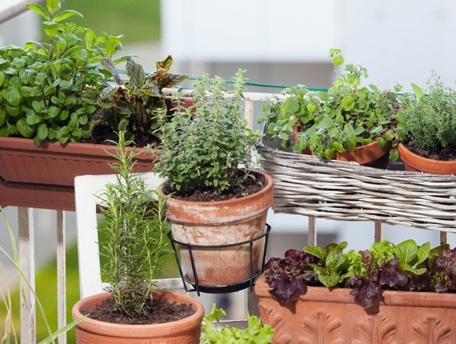 Balcony gardens are ideal for flowers, herbs, vegetables, and small fruiting plants: