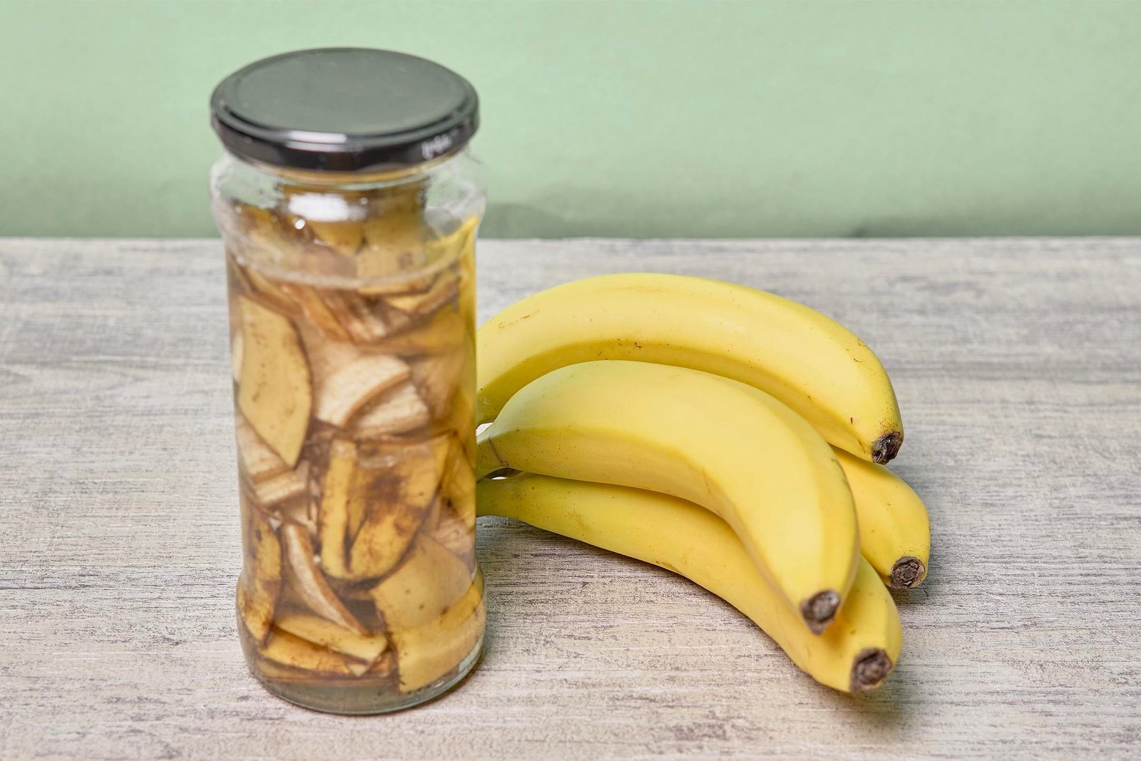 - Chop 1–2 banana peels and soak them in 2–4 cups of water for 24–48 hours.