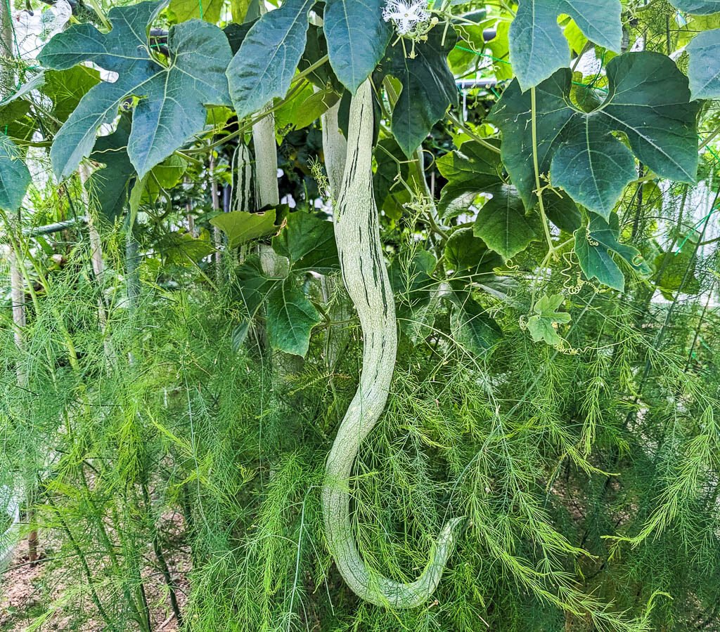 The young fruit is tender and edible, while mature gourds become fibrous and are often used for seeds or natural sponges. In India, it’s commonly called “padwal” or “chichinda,” but in America, it’s affectionately known as snake gourd or serpent gourd.