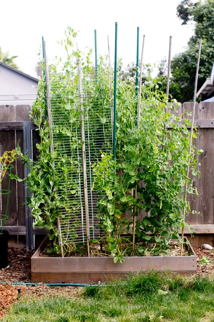 Snow peas are climbing plants, so provide a trellis, fence, or netting for them to grow on. This helps improve airflow, reduce disease, and makes harvesting easier.