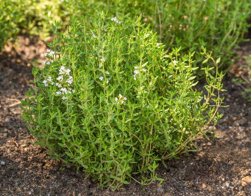Thyme pairs well with rosemary, sage, cabbage, and tomatoes. It also helps deter pests like cabbage worms and aphids—making it a smart companion in organic gardens.